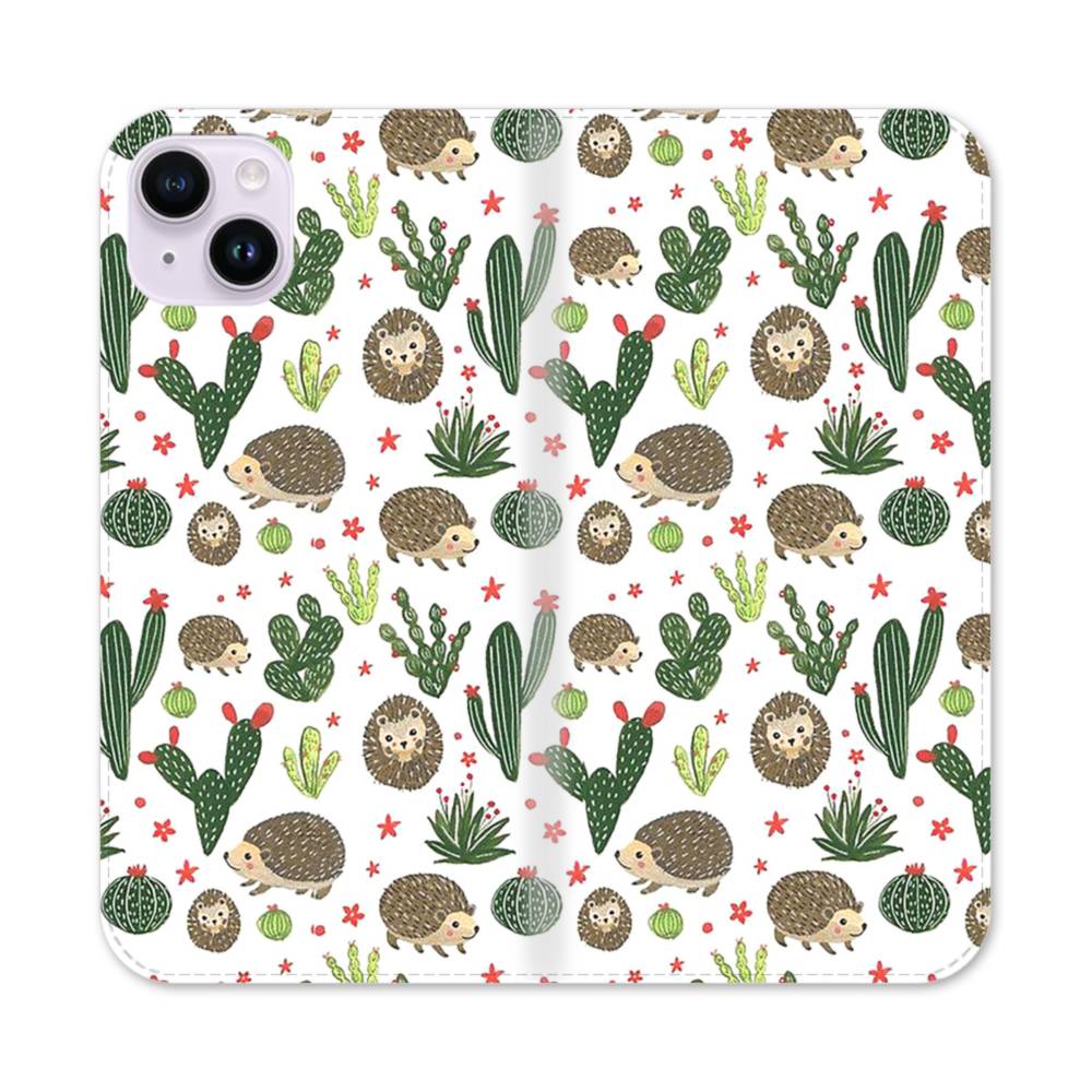 ハリネズミ&サボテン iPhone 14 Plus 手帳型ケース