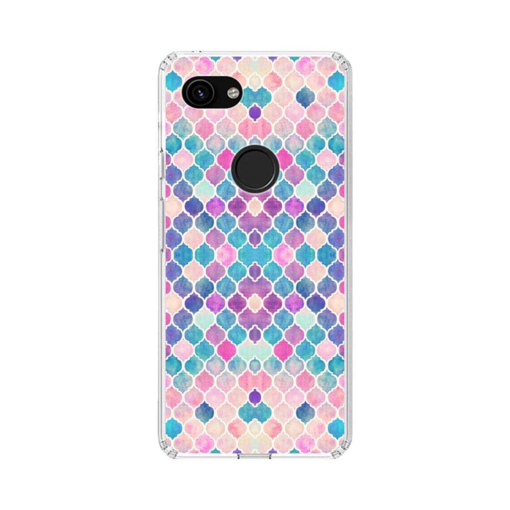 ブルー&パープル系幾何図パターン Google Pixel 3a クリアケース