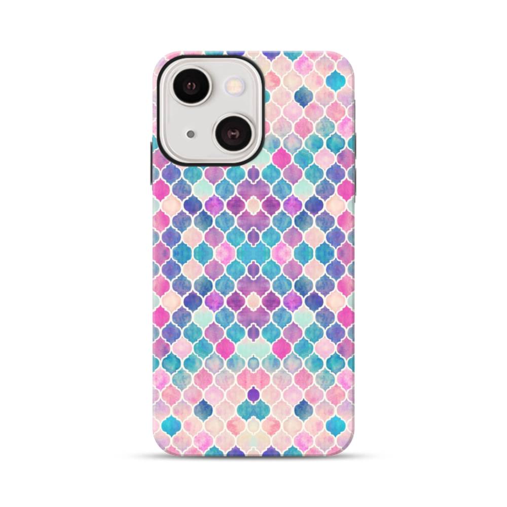 ブルー&パープル系幾何図パターン iPhone 13 Mini タフケース