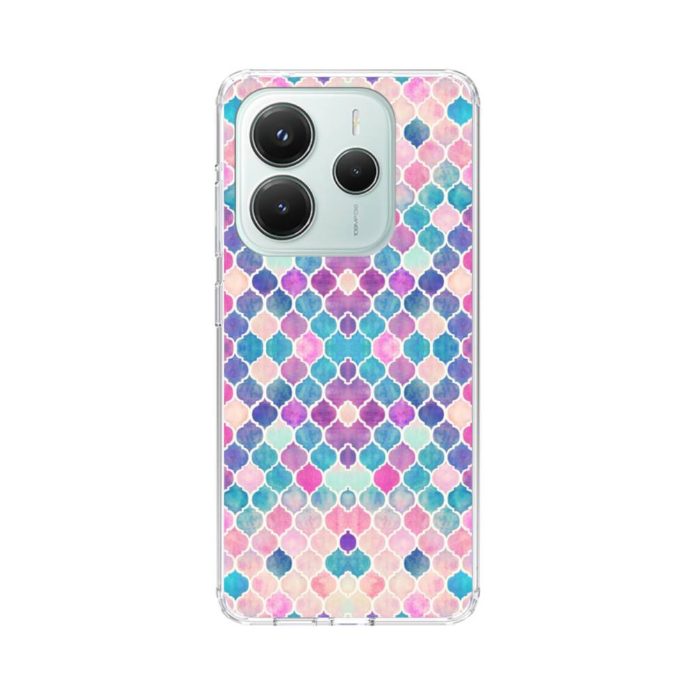 ブルー&パープル系幾何図パターン Xiaomi Redmi Note 14 5G クリアケース