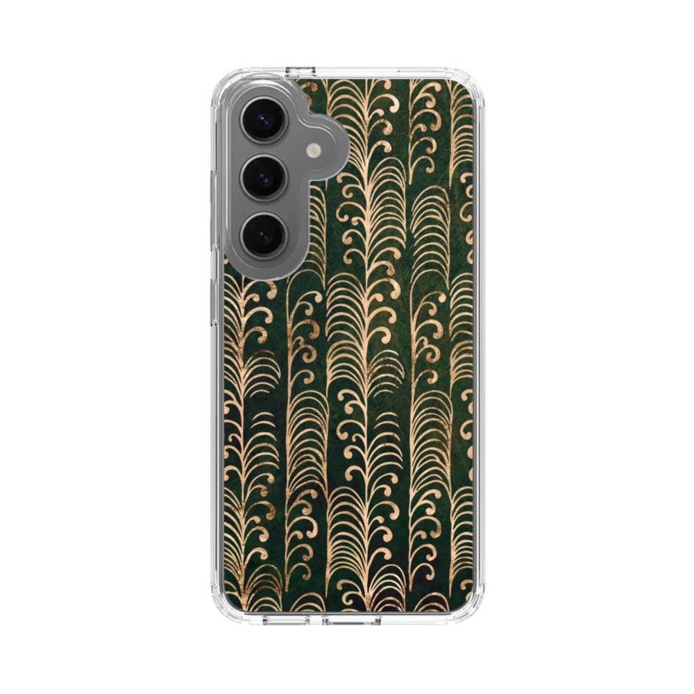 和柄・植物文様・深緑 Samsung Galaxy S25 Plus クリアケース