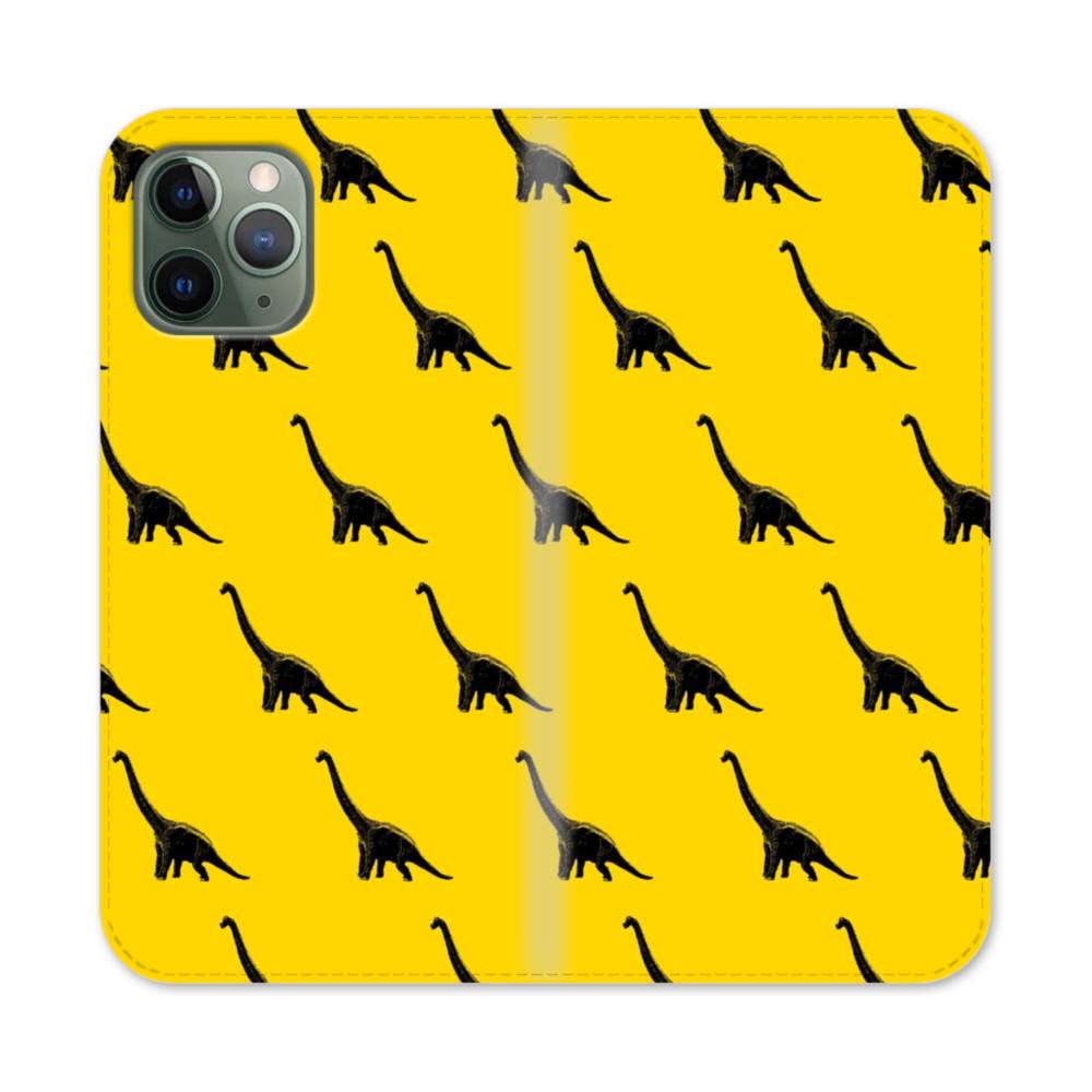 イエロー&恐竜の柄 iPhone 11 Pro Max 手帳型ケース