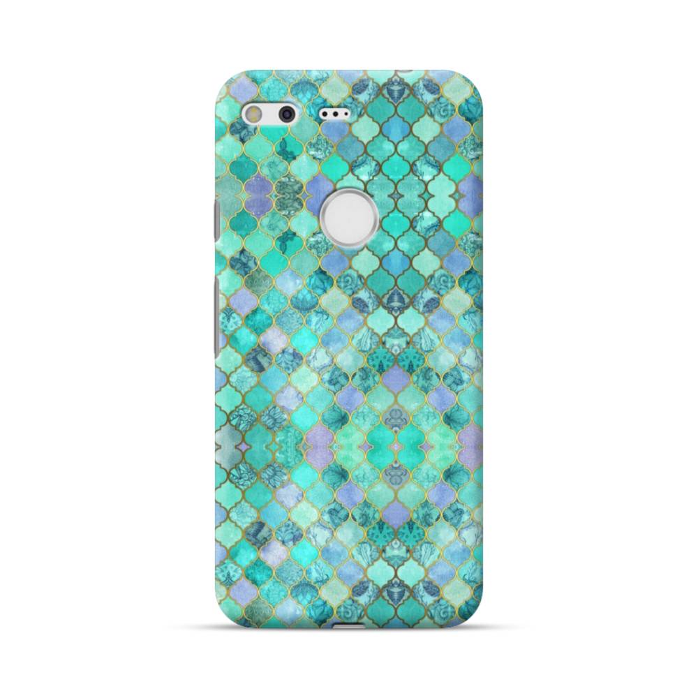 エメラルドグリーンのモザイク・パターン Google Pixel ハードケース