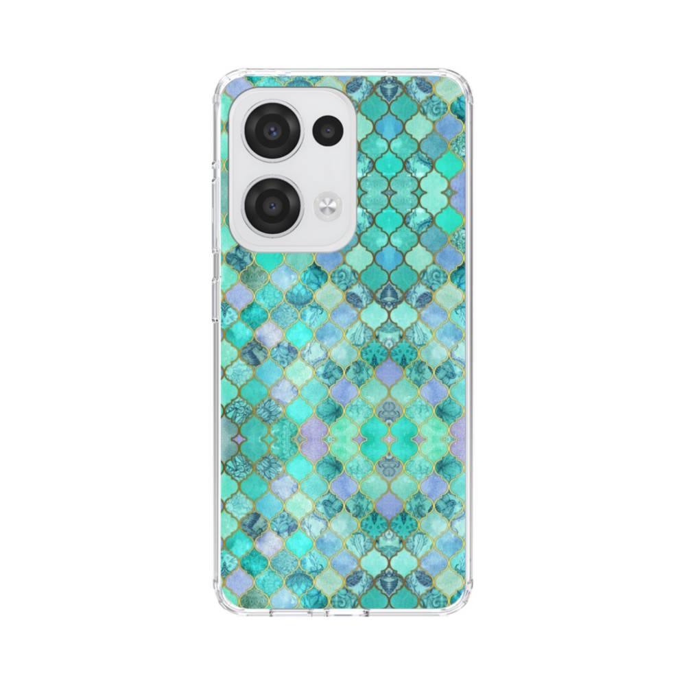 エメラルドグリーンのモザイク・パターン Oppo OPPO Reno 13 クリアケース