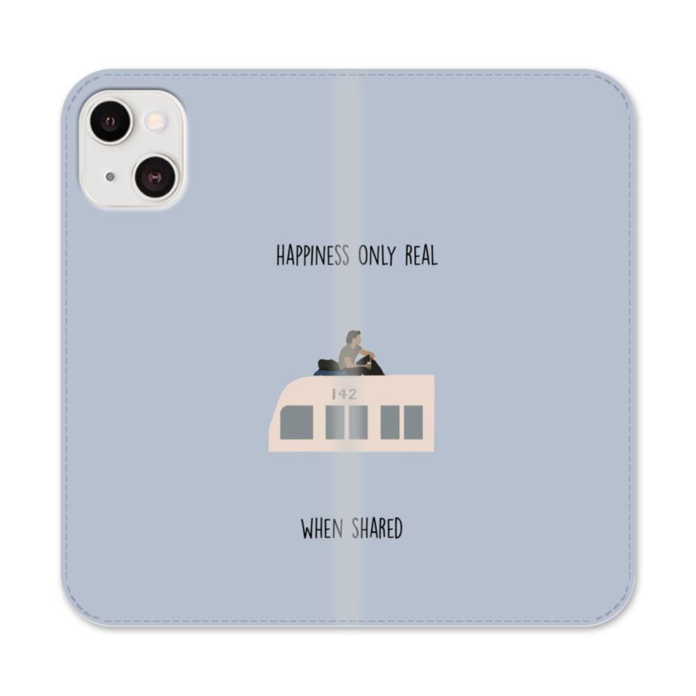 英文アート:happiness Only Real When Shared iPhone 13 手帳型ケース