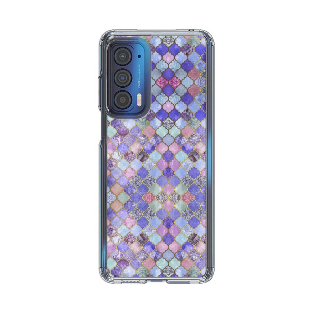 ブルー&パープル系モザイク・パターン Motorola Edge (2021) クリアケース
