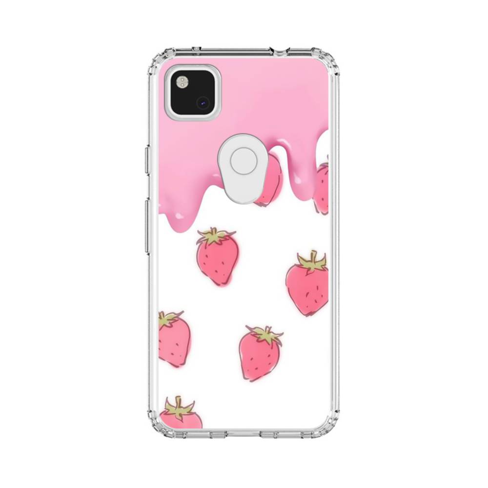 手書き風イチゴ&ピンク・クリーム Google Pixel 4a クリアケース