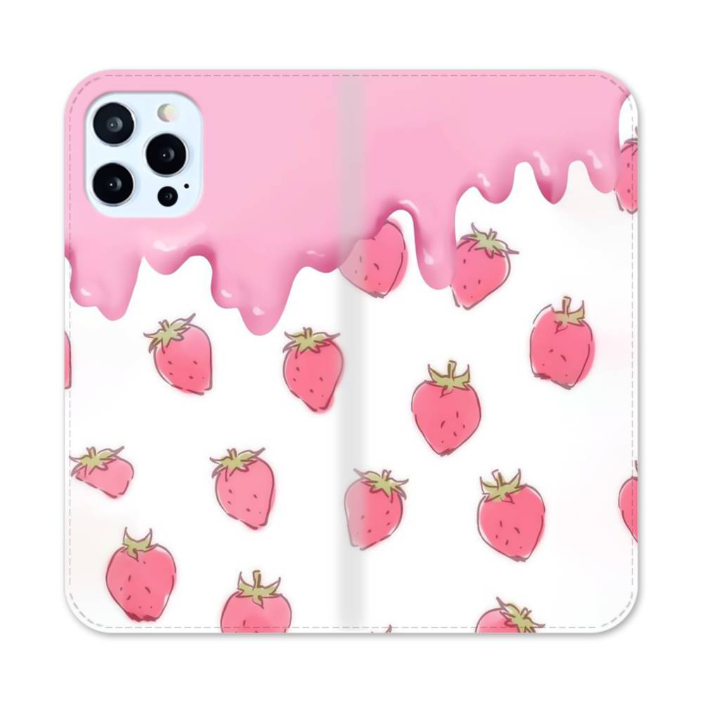 手書き風イチゴ&ピンク・クリーム iPhone 12 Pro Max 手帳型ケース
