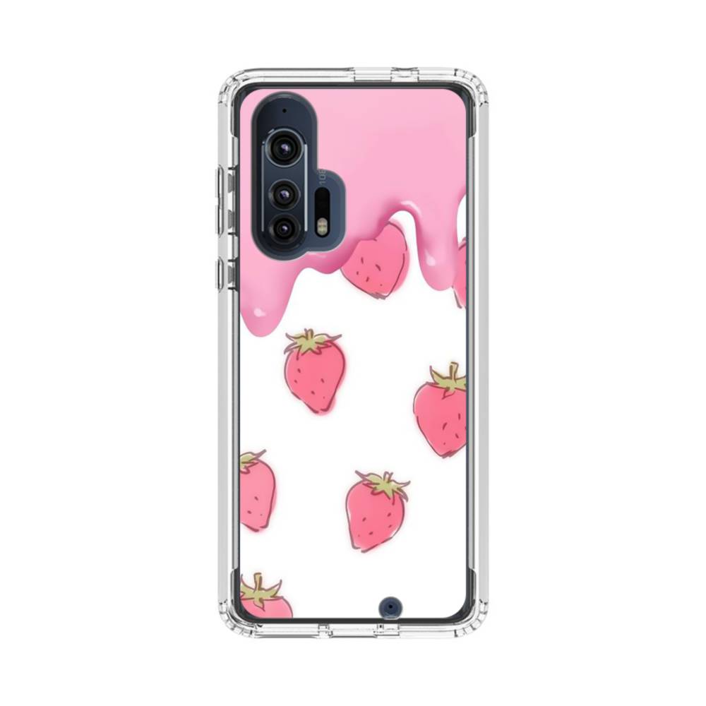手書き風イチゴ&ピンク・クリーム Motorola Edge Plus クリアケース