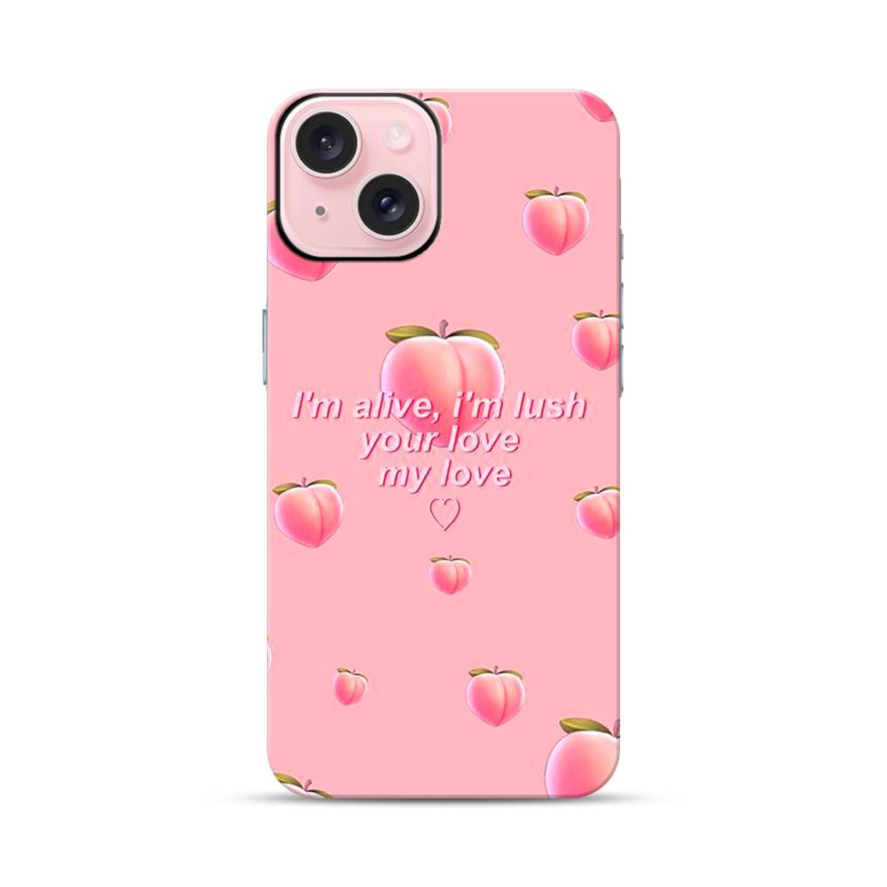 英文字入り桃&桃色 iPhone 15 タフケース