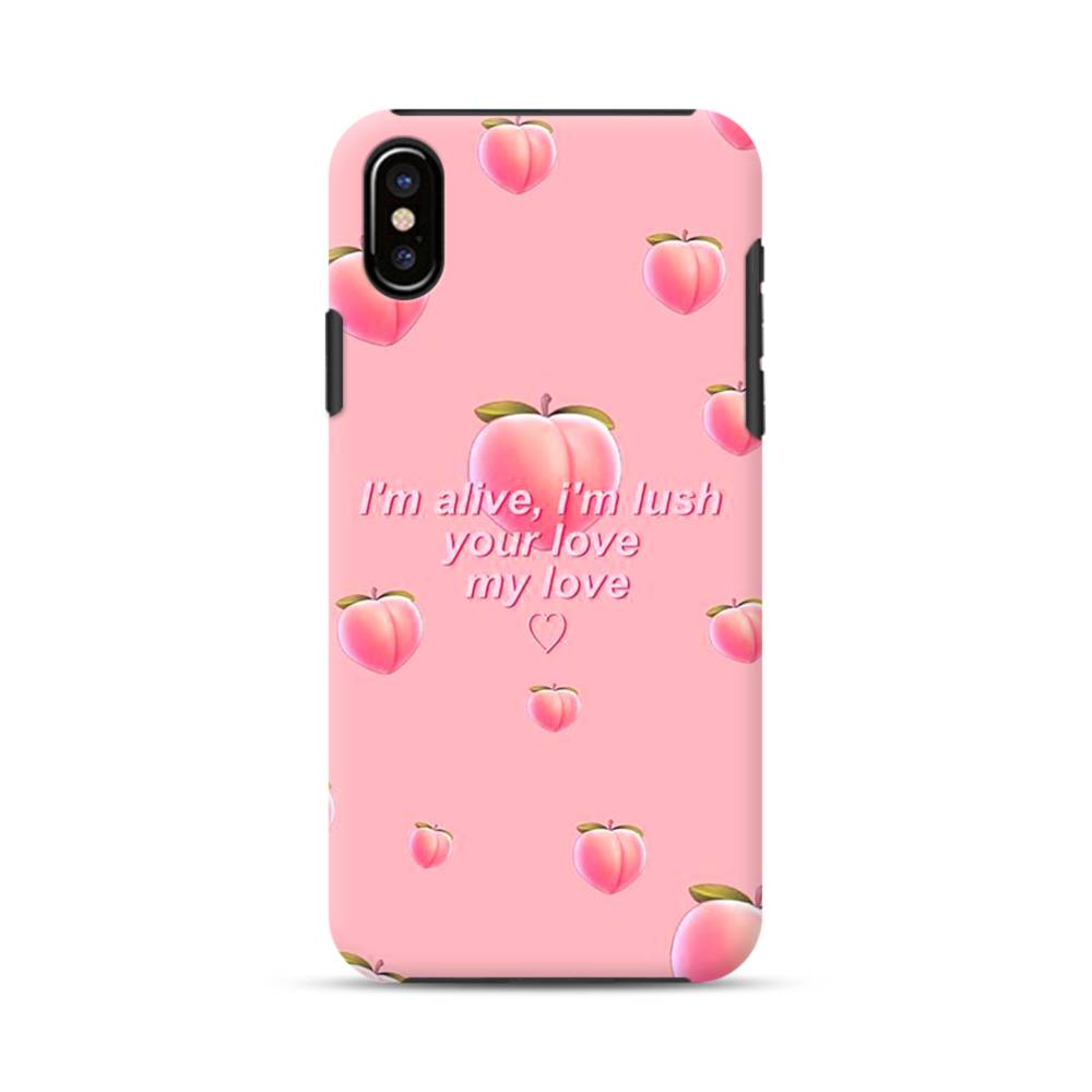 英文字入り桃&桃色 iPhone XS Max タフケース
