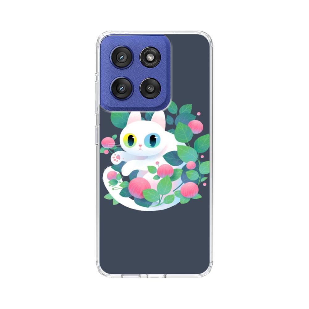花・白猫 Motorola Edge 60 Stylus クリアケース