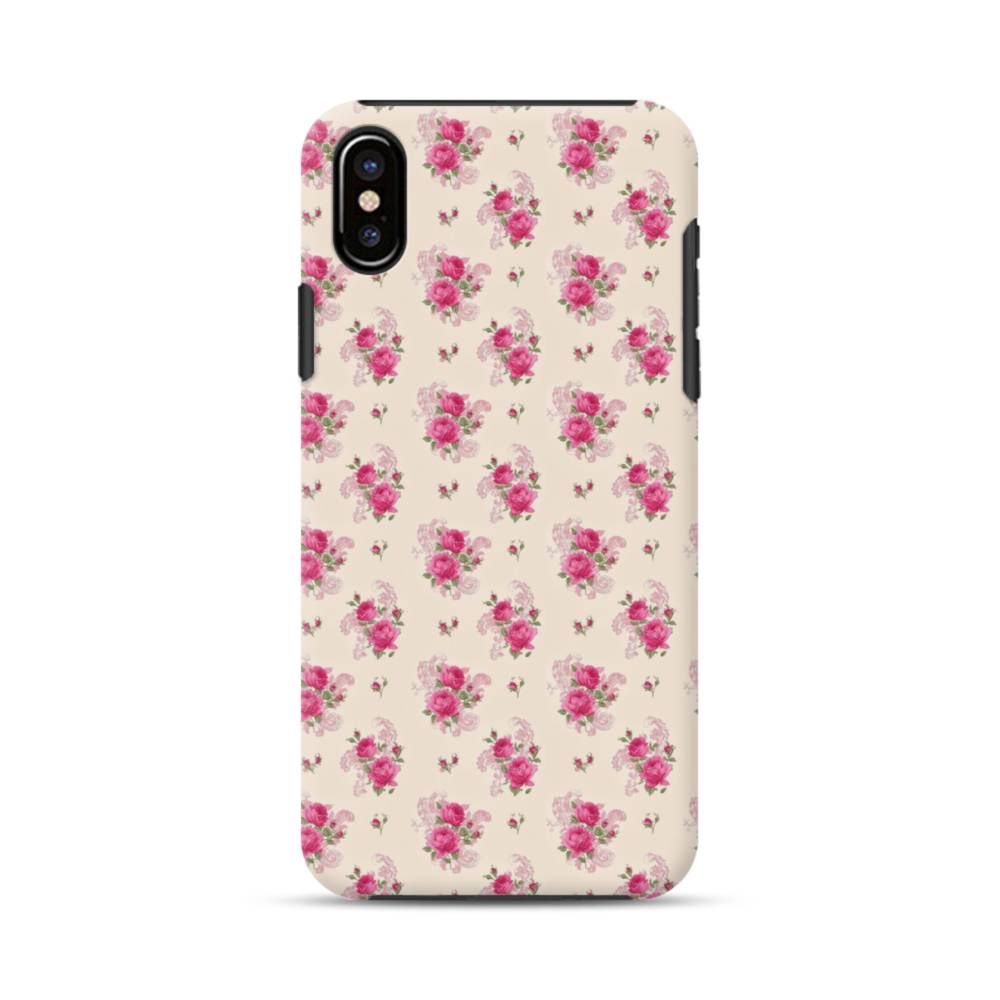 薄い紫を背景にした花束・パターン iPhone XS タフケース