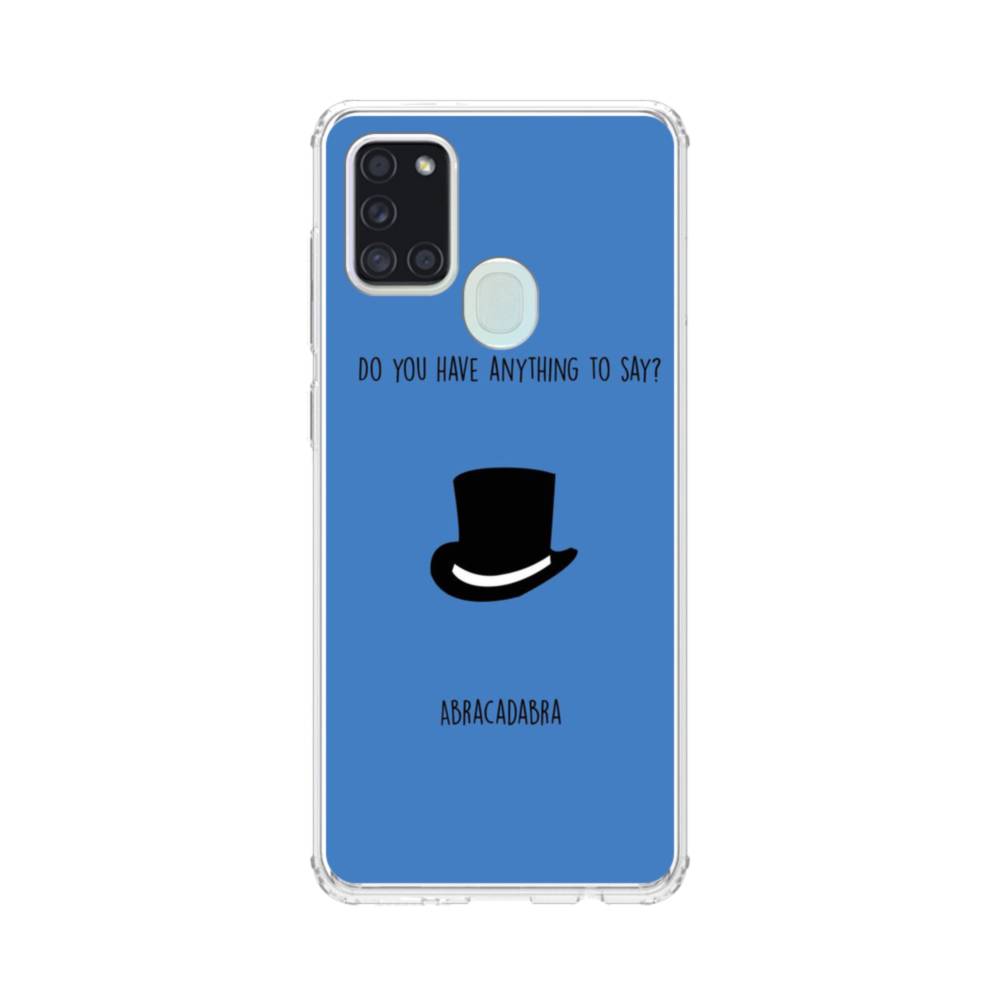 ユニークな英文アート:何かお話ししたい?アブラカダブラ Samsung Galaxy A21s クリアケース
