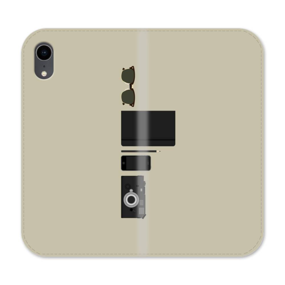 グレー ユニーク・アイテムのアート:サングラス、ノート、鉛筆& iPhone XR 手帳型ケース