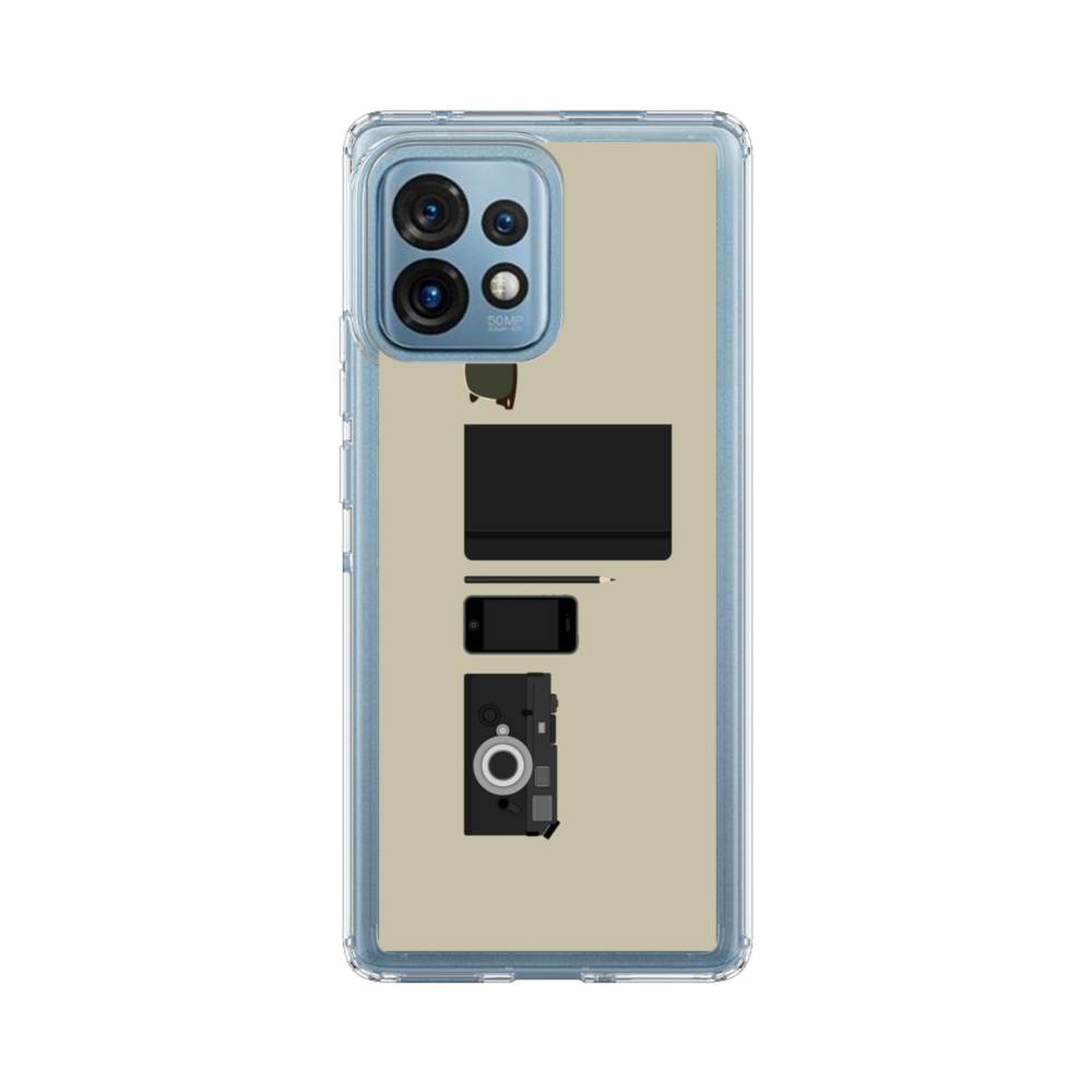 グレー ユニーク・アイテムのアート:サングラス、ノート、鉛筆& Motorola Edge Plus (2023) クリアケース