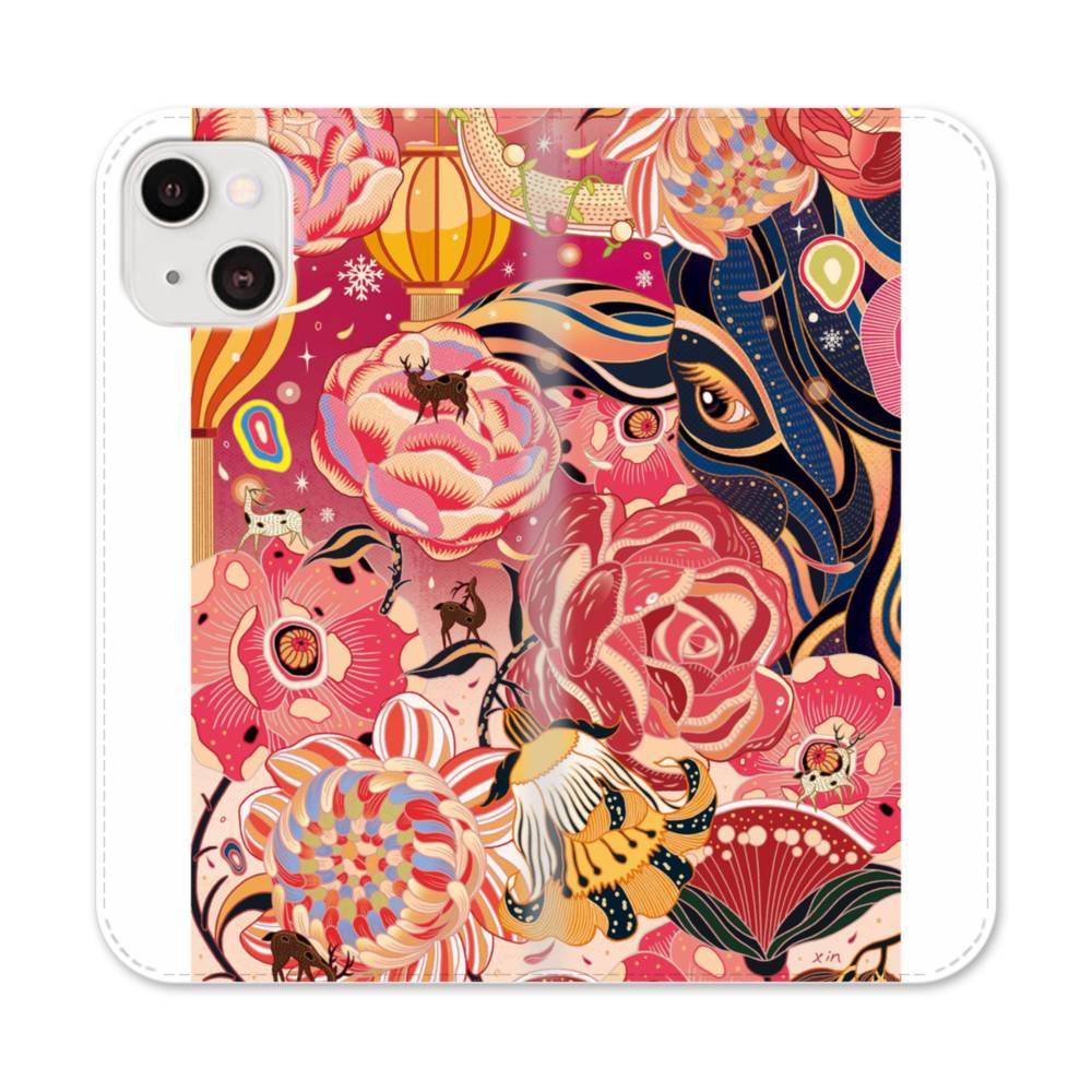 チャイナ風花柄 iPhone 13 Mini 手帳型ケース