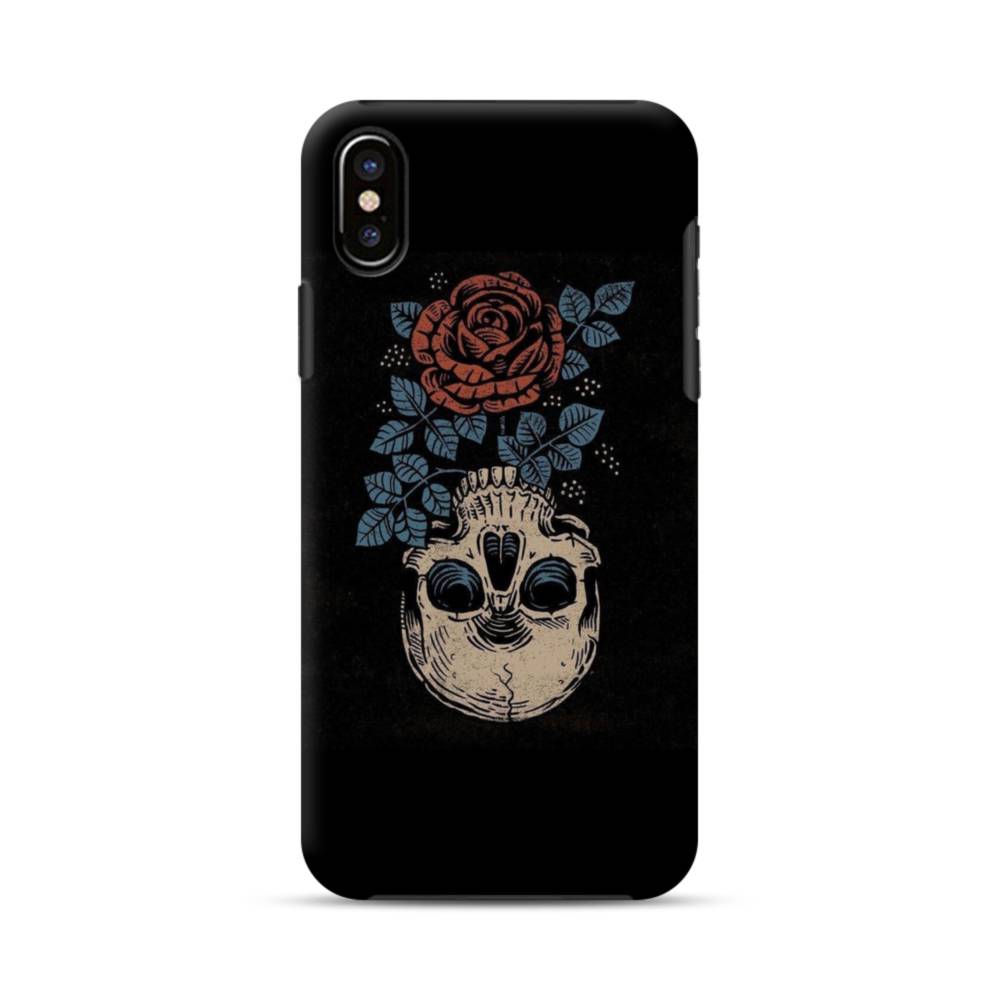 ブラック・ブルー&バラ・頭蓋骨 iPhone XS タフケース
