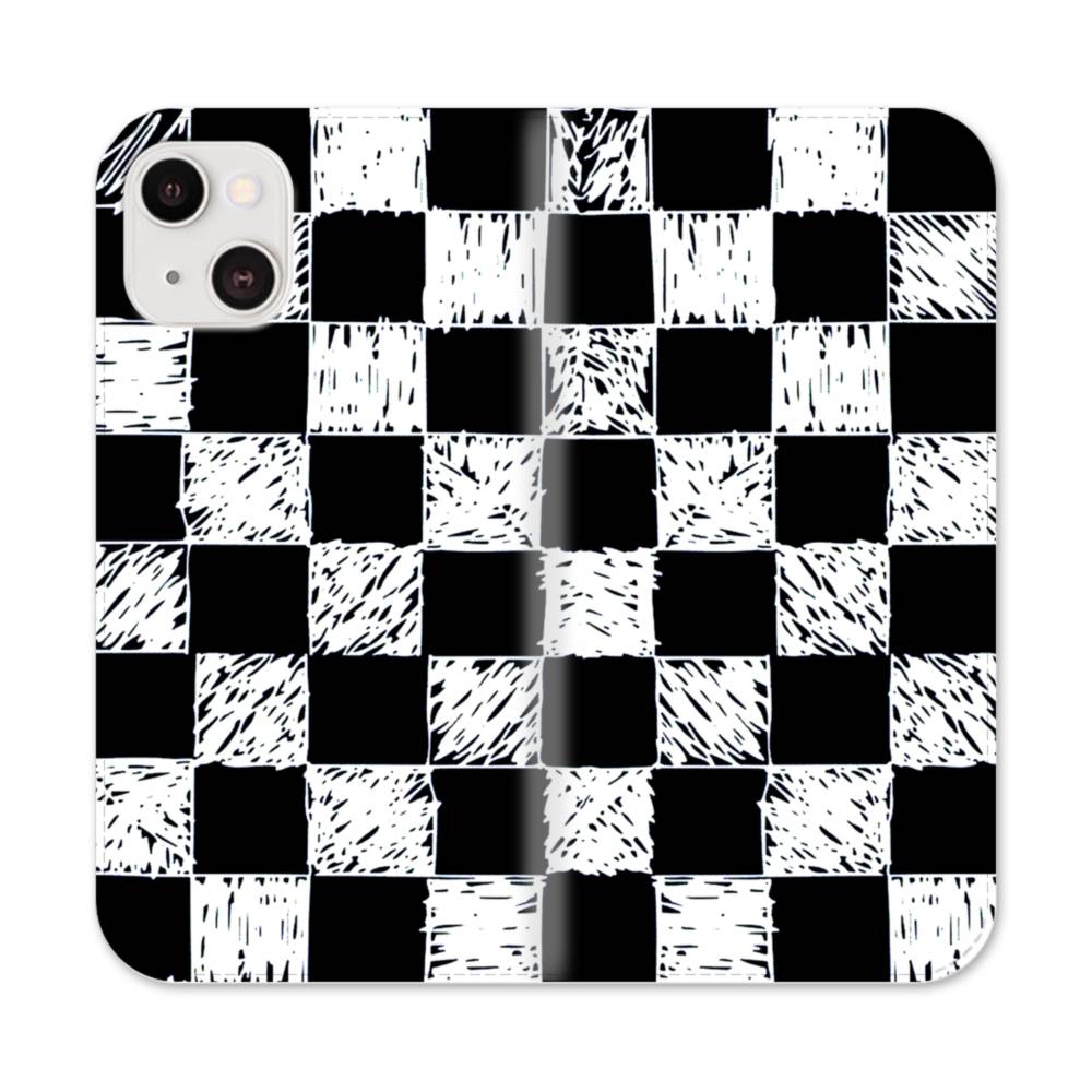 白黒チェック iPhone 13 手帳型ケース