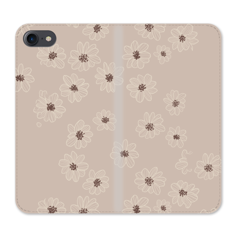 ライトブラウン・花柄 iPhone SE (2020) 手帳型ケース
