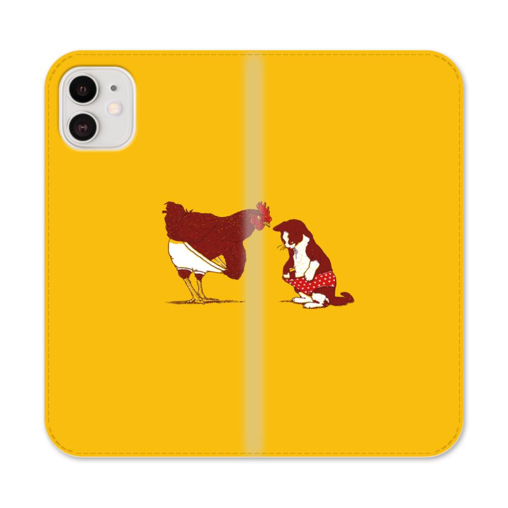 面白い系:動物たちのパンツなか見比べ iPhone 12 手帳型ケース