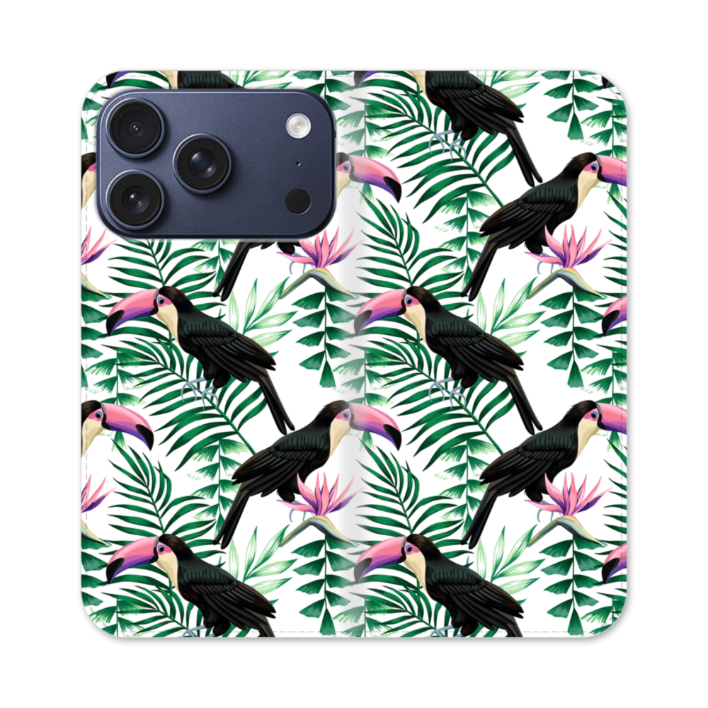 南米の鳥(オオハシ・紫)&植物 iPhone 17 Pro 手帳型ケース