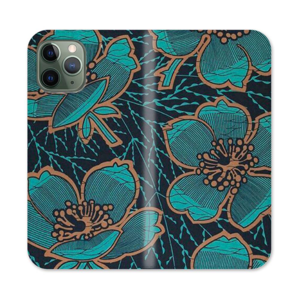 ダックブルー・花柄 iPhone 11 Pro 手帳型ケース