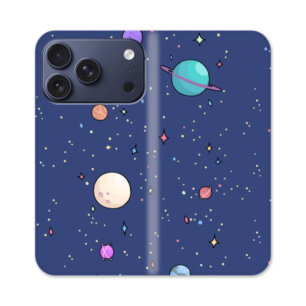 宇宙のモチーフ・惑星いっぱい iPhone 17 Pro 手帳型ケース