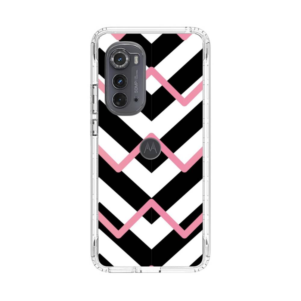 ピンク&ブラック・幾何模様 Motorola Edge (2022) クリアケース