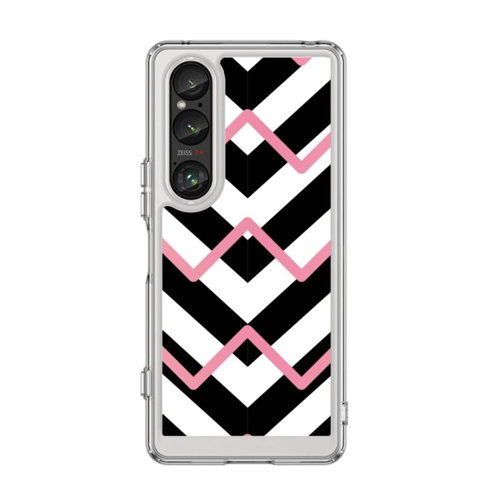 ピンク&ブラック・幾何模様 Sony Xperia 1 VI クリアケース