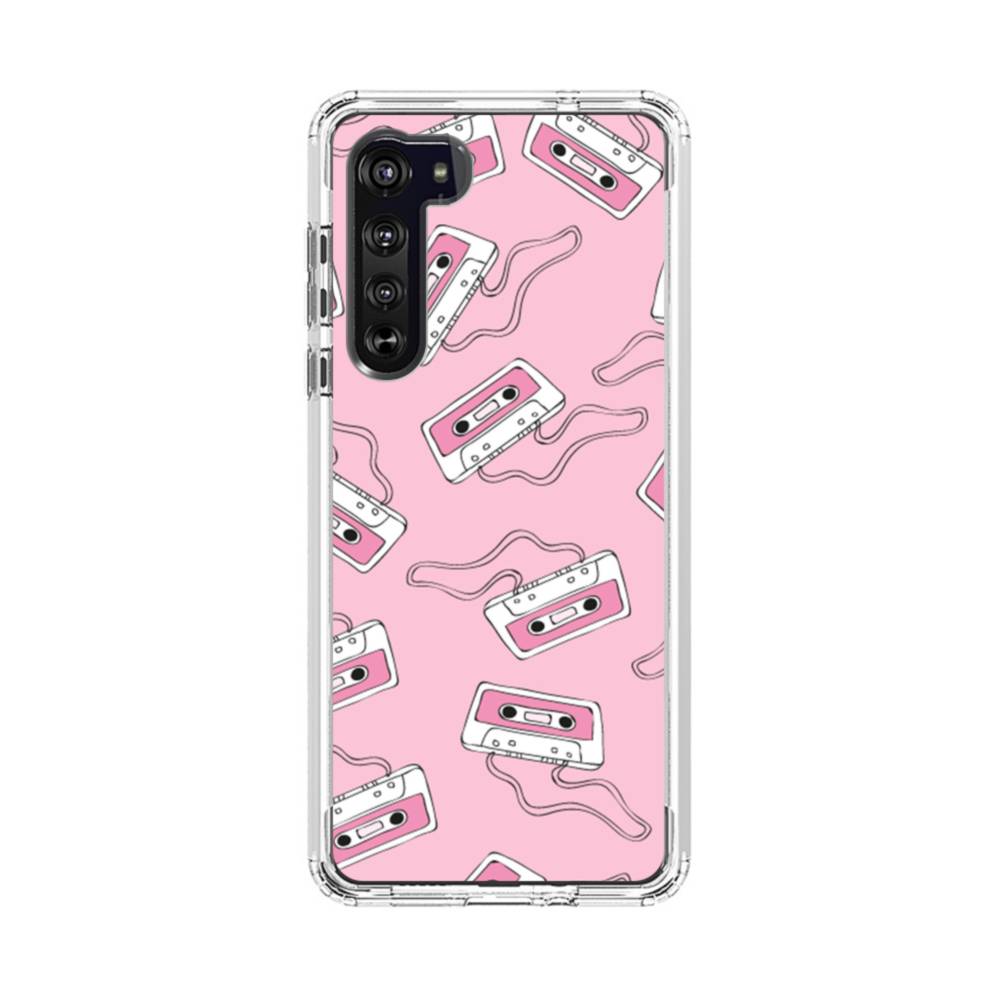ピンク・カセットテープ Motorola Edge クリアケース