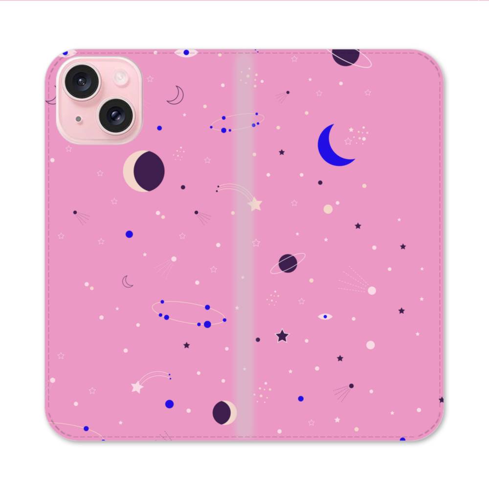 小柄・宇宙のモチーフ iPhone 15 手帳型ケース