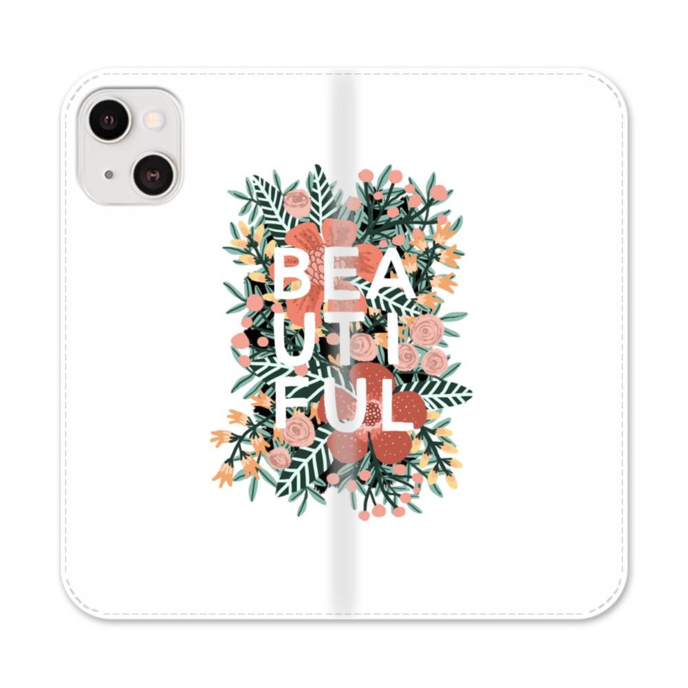 フラワー&英文字のイラスト iPhone 13 Mini 手帳型ケース
