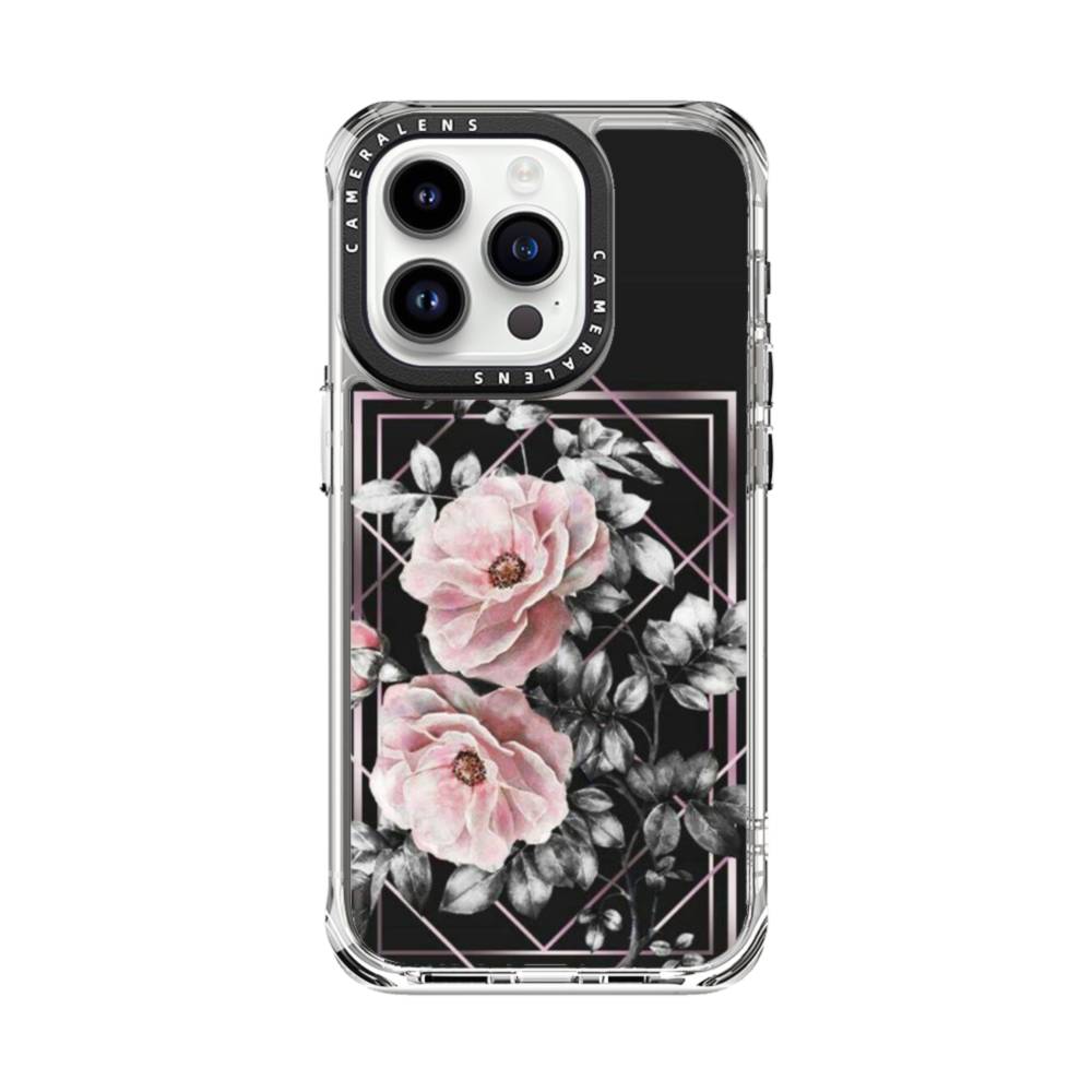 ブラック ピンク バラ ライン 優雅的 Geometry iPhone 14 Pro クリアケース