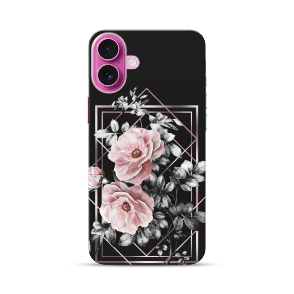 ブラック ピンク バラ ライン 優雅的 Geometry iPhone 16 Plus ハードケース