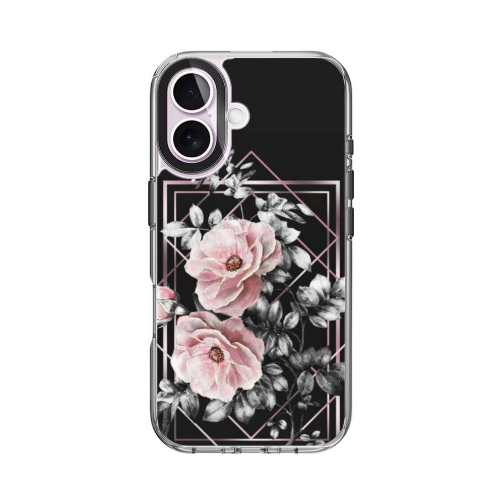 ブラック ピンク バラ ライン 優雅的 Geometry iPhone 17 クリアケース