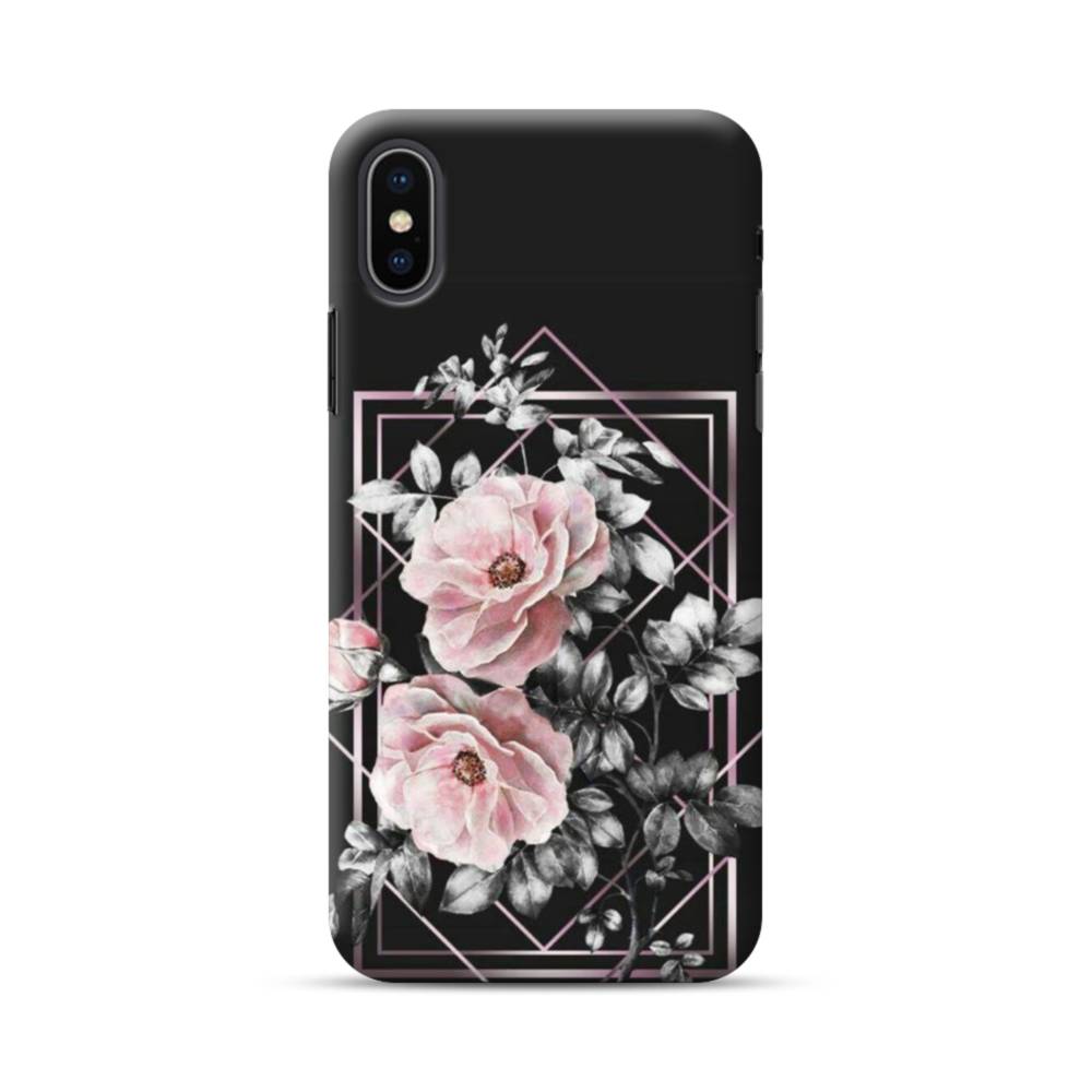 ブラック ピンク バラ ライン 優雅的 Geometry iPhone XS Max ハードケース