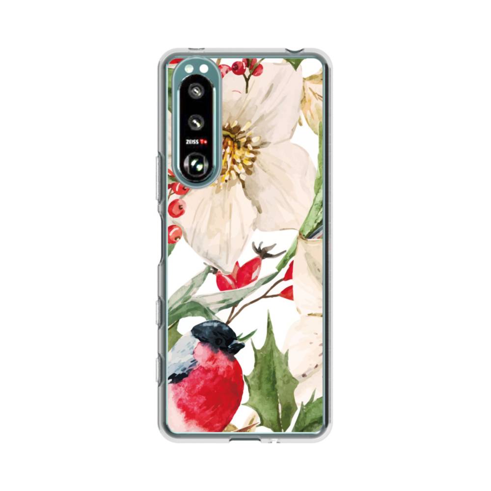 赤の実・花&小鳥・花柄 Sony Xperia 5 III クリアケース