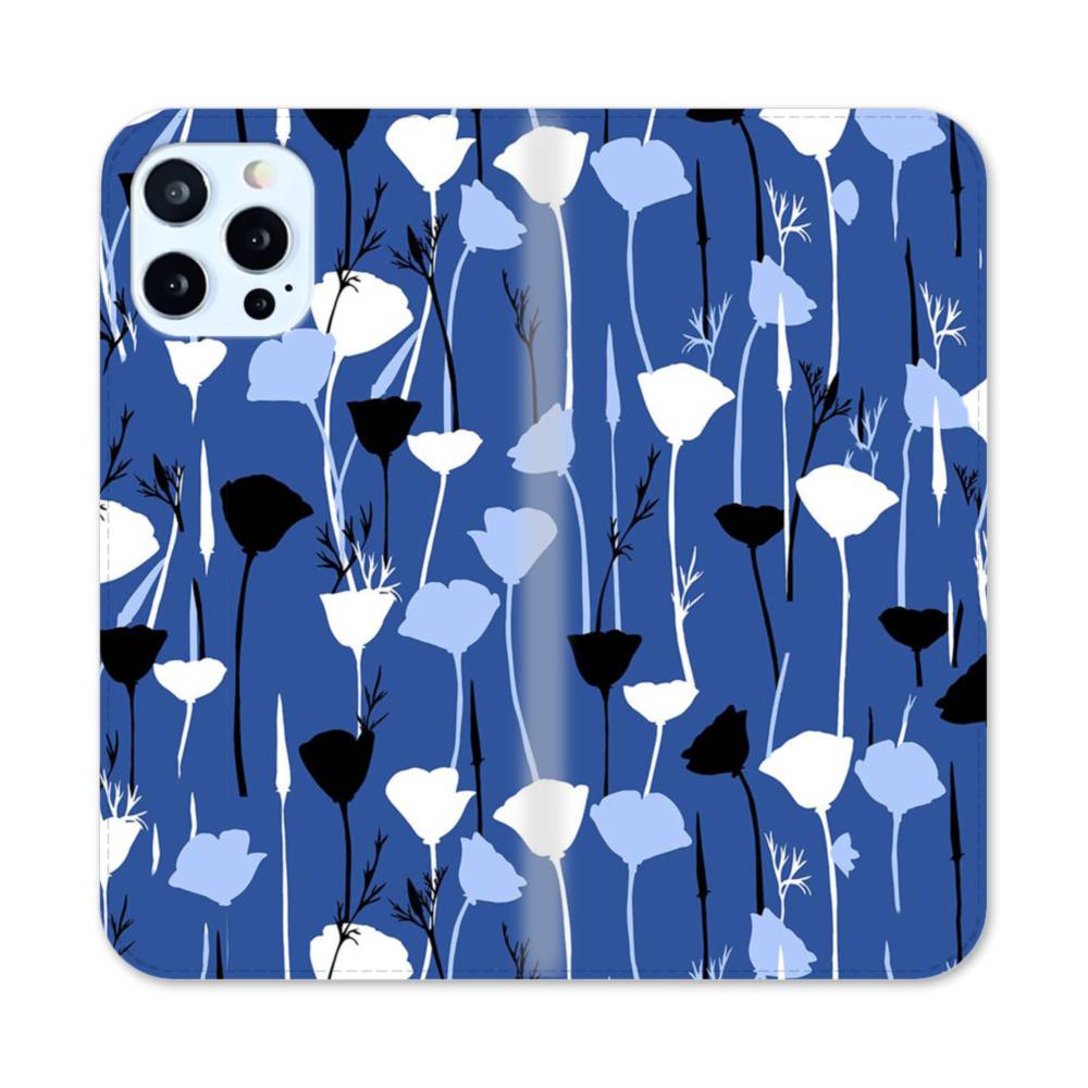 ブルー・フラワー iPhone 12 Pro Max 手帳型ケース