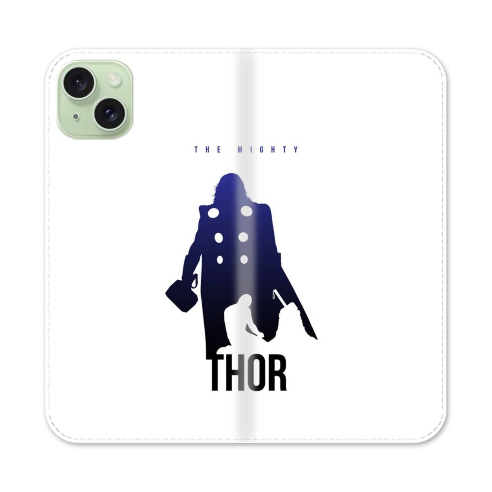 映画アート:マイティ・ソー (Thor) ホワイト&ブルー iPhone 15 Plus 手帳型ケース