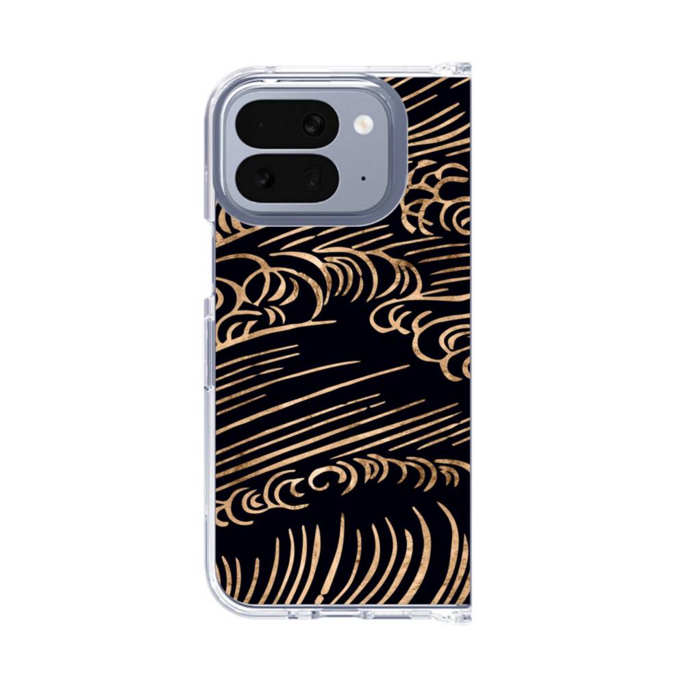和柄・リッチブラック背景の浪紋 Google Pixel 10 Pro Fold クリアケース