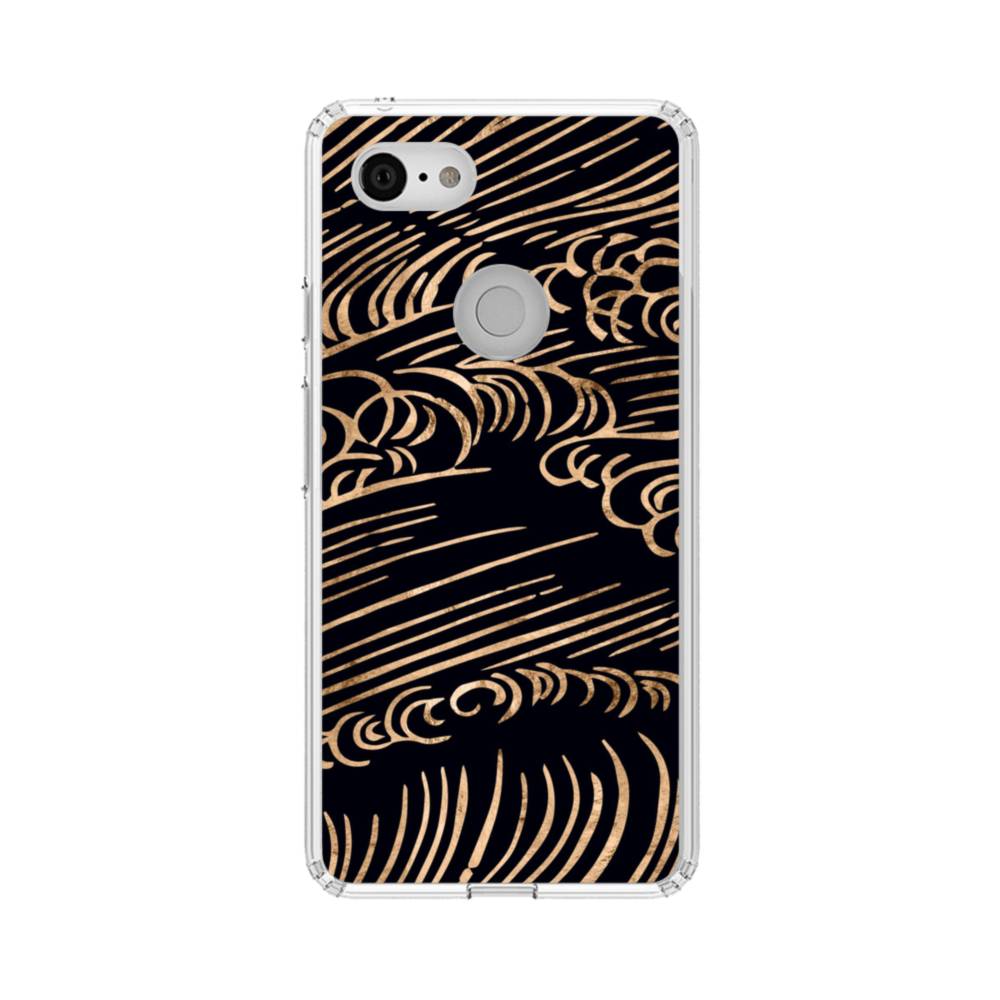 和柄・リッチブラック背景の浪紋 Google Pixel 3 XL クリアケース