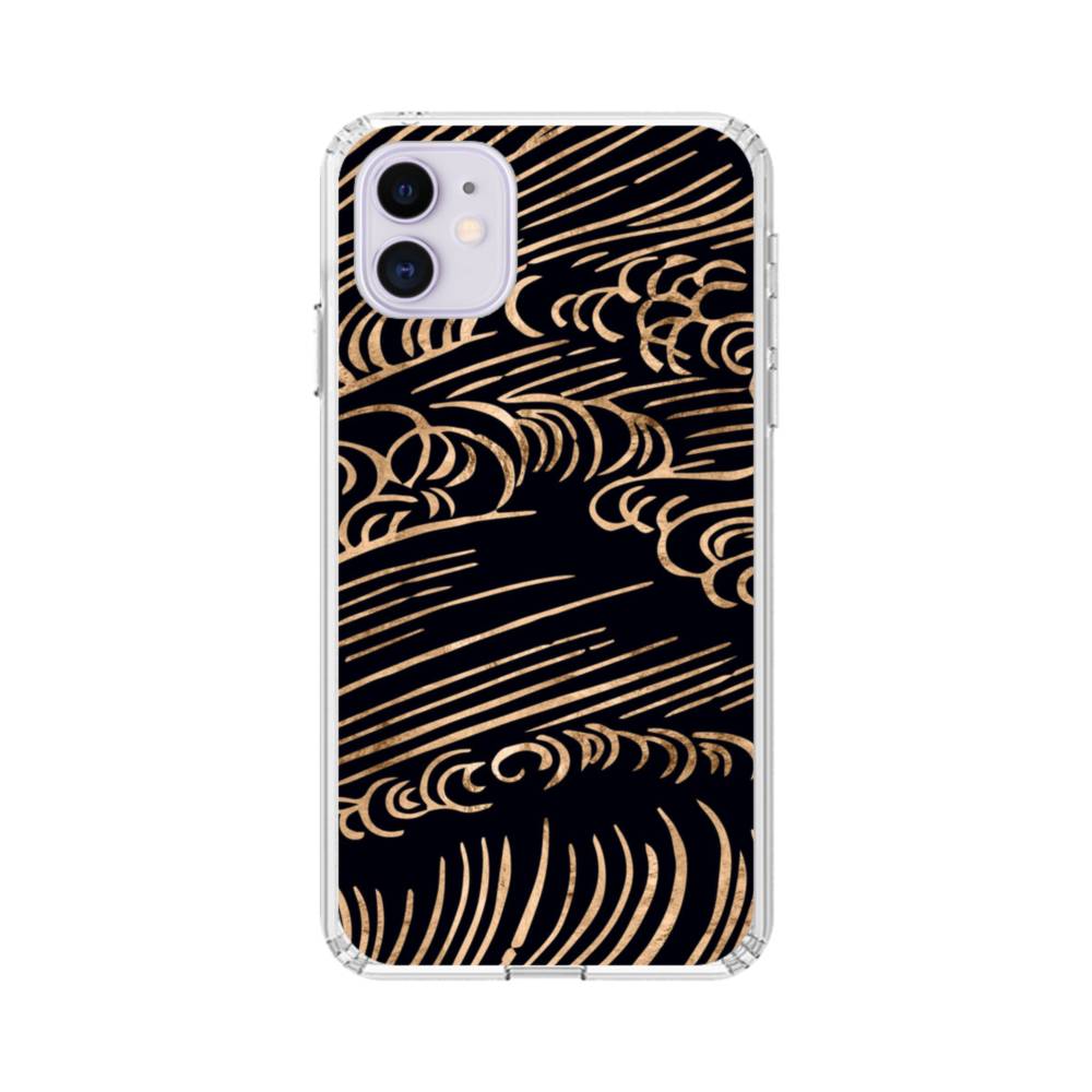 和柄・リッチブラック背景の浪紋 iPhone 11 クリアケース