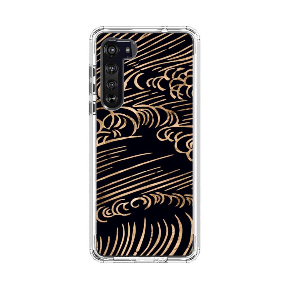 和柄・リッチブラック背景の浪紋 Motorola Edge クリアケース