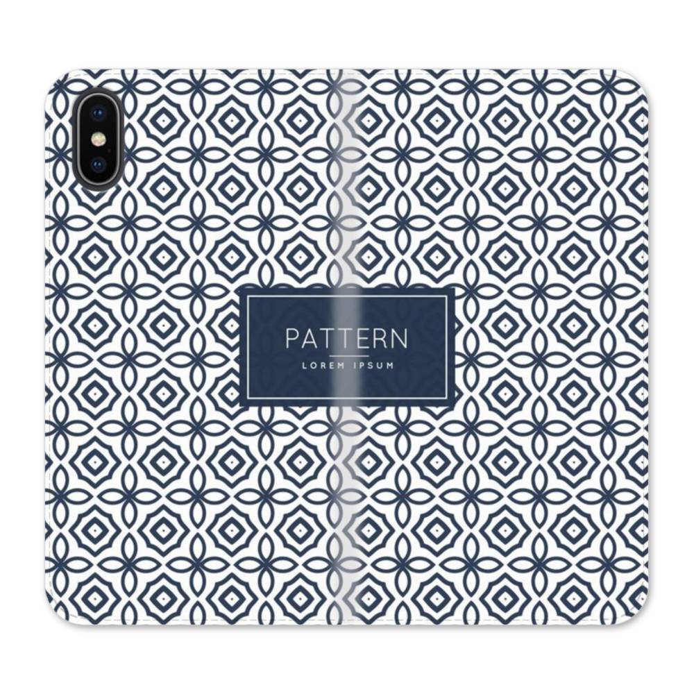 デザイン・アートな幾何図のパターン:紺 iPhone X 手帳型ケース