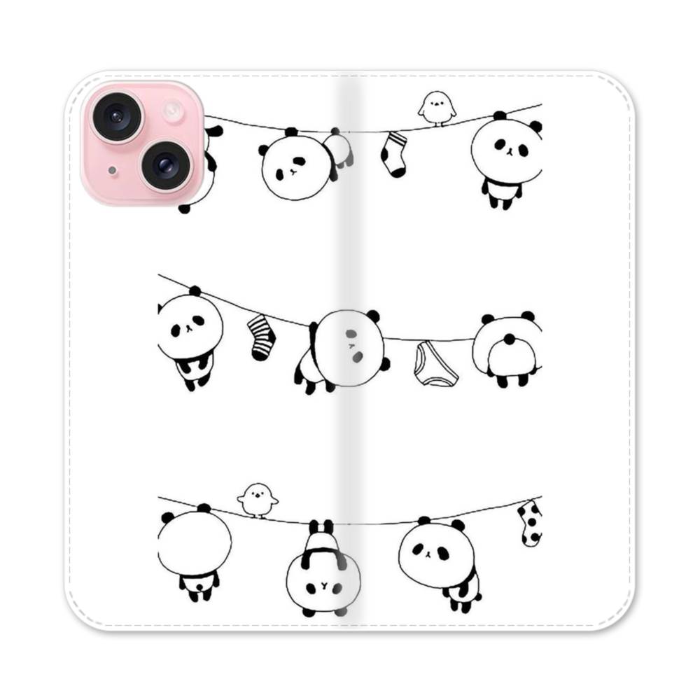 洗濯物・パンダ・パンツ iPhone 15 手帳型ケース