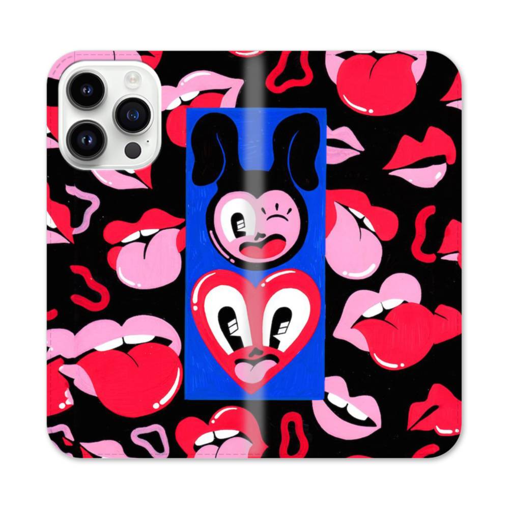 欧米のウサギ&ハート iPhone 14 Pro Max 手帳型ケース