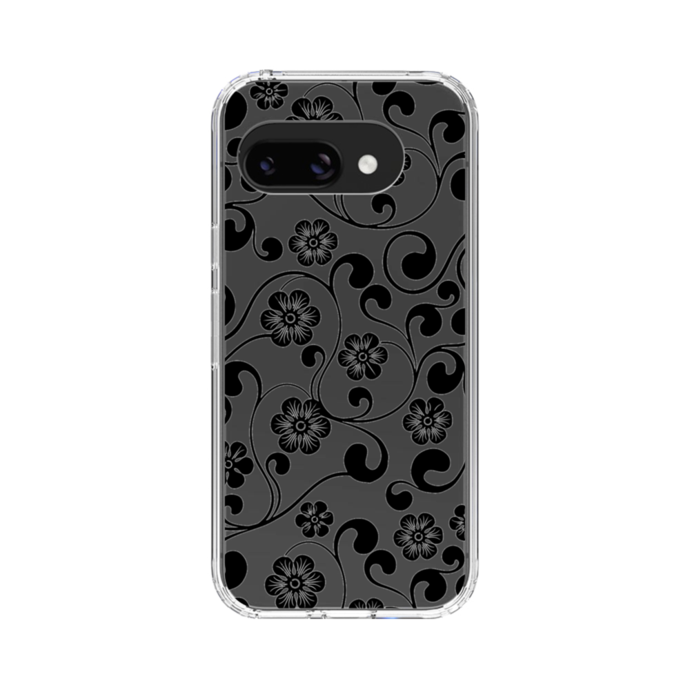 無背景でプリントできる白黒花柄 Google Pixel 9a クリアケース