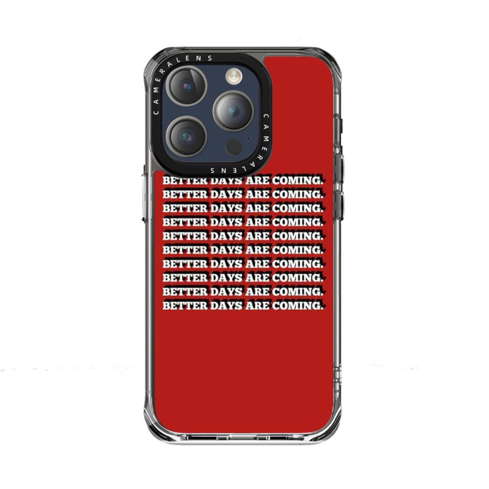 ケースは、iPhone 15 Proの突出したカメラを保護する。
