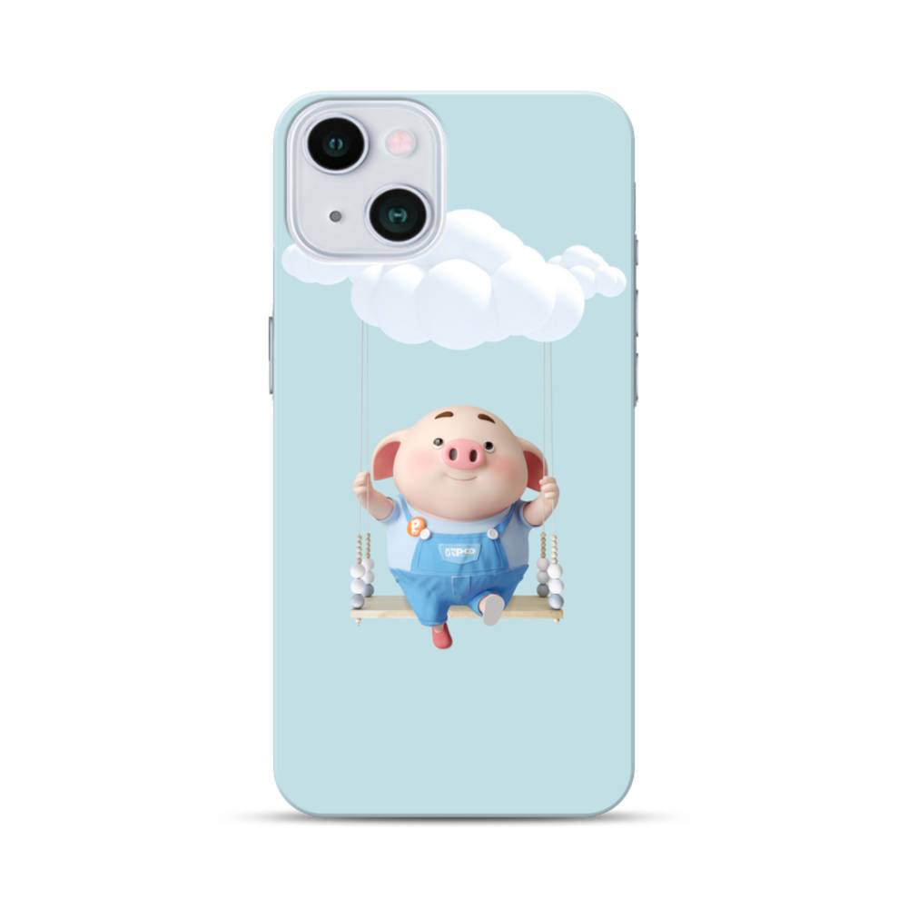 雲の下でブランコに乗ったコブタ iPhone 13 ハードケース